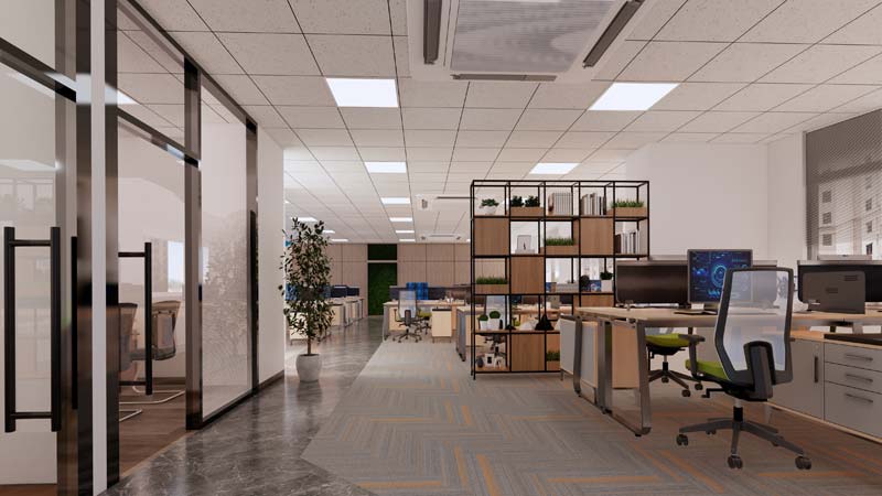 前臺、開放辦公區、獨立辦公室、休息區、會議室等設計理念