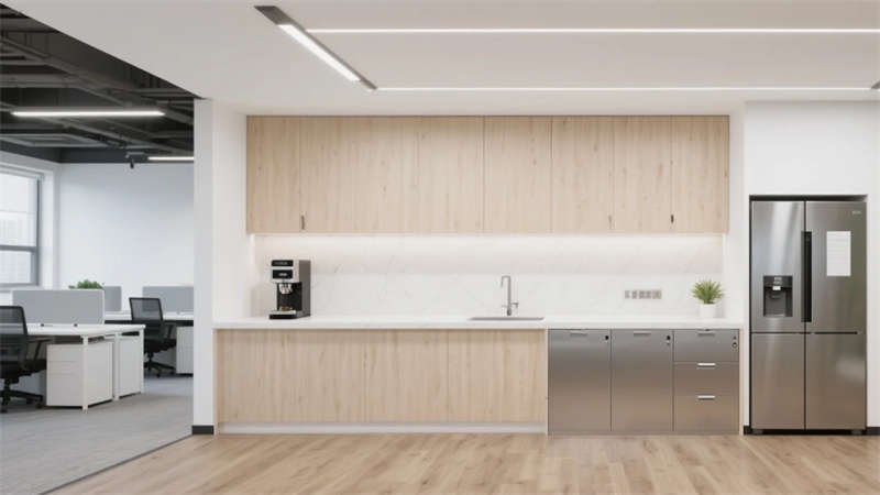 室內空間延續外立面設計語言,企業大堂通過技術創新實現淺白大理石與木紋墻面的無縫拼接,懸浮式線性燈光系統可隨自然光線智能調節色溫。開放式辦公區配置智慧化模塊組合,可升降桌體與軌道射燈靈活適配多元場景,協作島集成無線充電與環境感知功能。高管辦公室采用智能霧化玻璃隔斷,實現隱私與通透的自由切換。科技會議室搭載高清透明顯示系統與多聲道聲學設備,電動百葉簾與補光系統聯動打造智能會議環境。