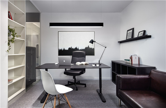 在78平空間內布置20個工位、茶水間、會議室和一個獨立辦公室并不容易,設計師在平面功能最大化,營造豐富的灰空間,消除辦公空間以往嚴肅緊張的固有印象。黑白極簡的設計語言在節省造價的同時完美契合了IT公司的現代感與科技感,而木質的飄窗是整個黑白空間的一抹暖色,在有限的面積中為員工營造了輕松的閱讀與交流空間。豐富的玻璃隔斷形成通透的空間,相互貫穿,模糊了空間屬性,從而削弱小空間帶來的局促感。