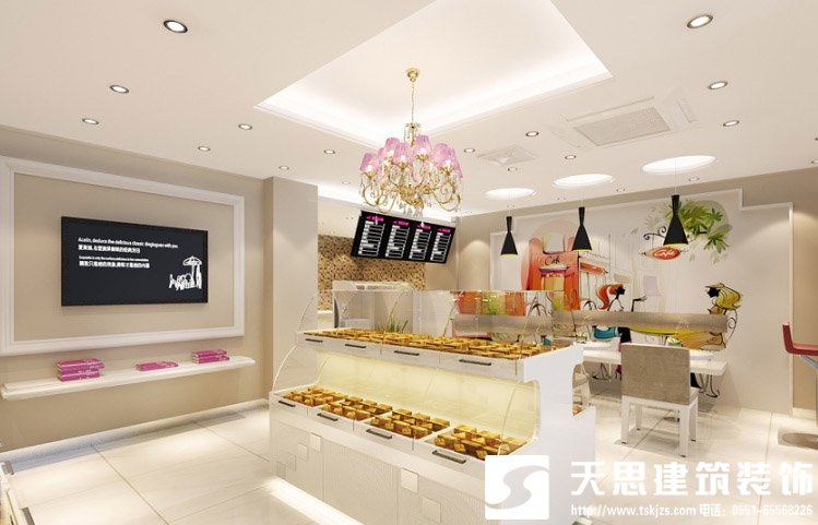 蛋糕店裝修中更要注意店面的整潔和環保材料的運用,給顧客一種健康、溫馨的環境體驗。一般情況下,喜歡蛋糕的多以婦女兒童居多,所以一般蛋糕店的裝修色調都以健康明朗輕快的暖色調為主,所以要從這些方面多下些功夫。合肥天思裝飾,合肥地區最專業的蛋糕店裝修設計公司,時刻歡迎著廣大客戶的光臨。