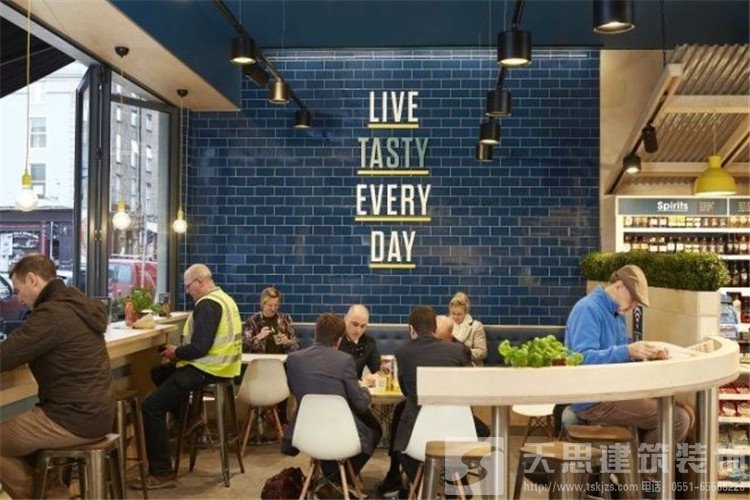 食品區域成為了設計重點,想要變成一個可以給予顧客24 小時便利的空間,無論是去吃早餐和便利午餐,以及買個牛奶或是打包食物回家.為此,還在店內專門辟出一塊空間做廚房,主打新鮮、健康的食物.