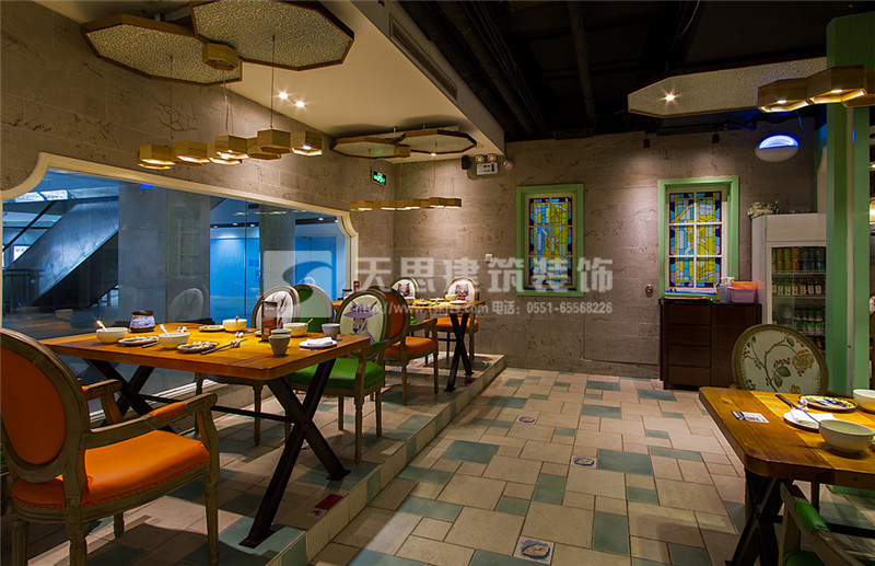 本案實際面積(含廚房)僅100平。本設計將有限的空間塑造成帶有濃濃懷舊氣息的老上海轉角小店,使人們在這個鋼筋混凝土的世界里有一處心靈休憩的綠地,可口的小食熨帖饑餓的腸胃,復古的環境溫馨疲憊的心靈。