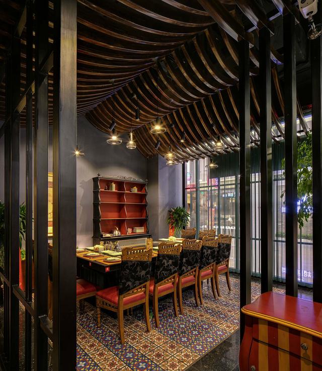 設計時采用色彩的沖撞,詮釋一種低調的腔調-隨性、自我、隨性、自我,恰如這家餐廳新秀傳奇風范的彰顯。自由而富有當代氣息的空間設計,餐廳工業時代的裝飾細節與個性且富有設計感的木質家具展現了設計師前沿的設計理念。