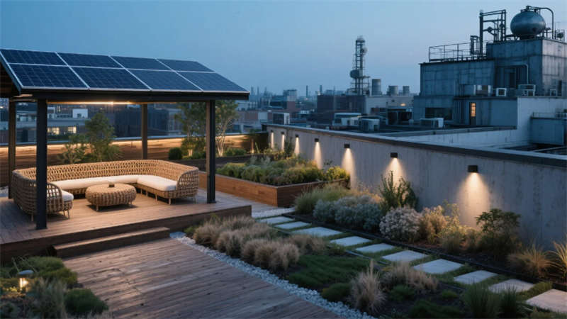 材料講述可持續故事:再生木材家具、模塊化綠植系統、光伏涼亭,在降低能耗的同時沉淀時間溫度。這里不僅是生產的容器,更是一座自我更新的生態引擎,在合肥的工業土壤中長出未來枝椏。