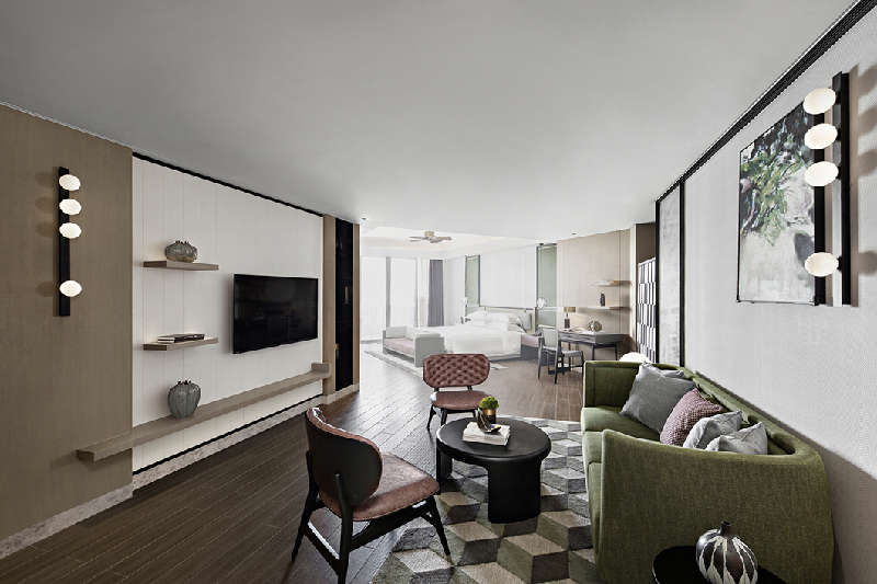 高落地窗讓大量自然光透入,巧借室外海景色延伸空間,讓客人可以堂直接看到景和熱植物景觀,擁有更舒適的視野。