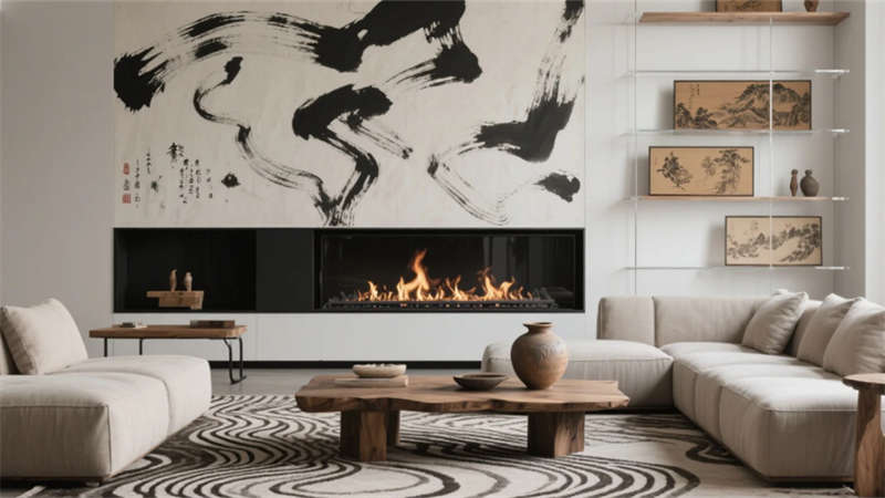 步入大廳,弧形亞麻沙發與編織地毯圍合出松弛場域,整面落地窗借景庭院竹影,琴葉榕與懸浮綠植墻形成立體生態敘事。多功能區以巢湖水波紋地毯呼應地域脈絡,壁爐旁的非遺火筆畫裝置暗藏城市文化密碼。咖啡吧藤編座椅與水磨石臺面碰撞,幾何綠植墻在百葉光影中演繹晨昏詩意。