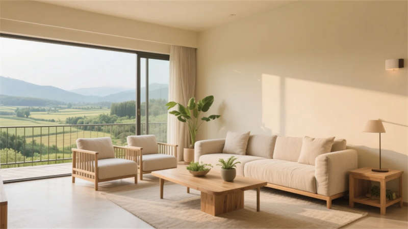 這座鄉村民宿以現代簡約風格為核心,將自然與建筑融為一體。設計強調線條的干凈利落和材質的原生質感,白色墻面與木質結構形成對比,大面積的玻璃引入田野與天空的景致,讓室內外界限模糊。庭院保留原生植被,通過碎石與木平臺的組合,營造出輕松的氛圍。