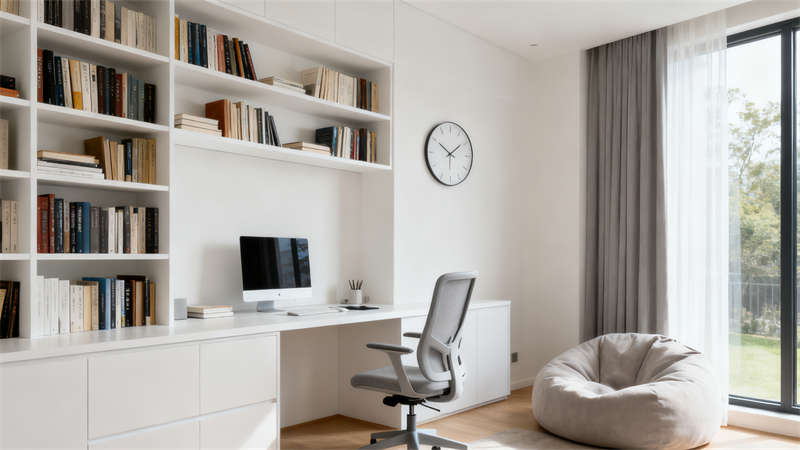 室內空間延續整體風格,客廳注重通透感,大面積采光讓空間更顯開闊,簡約款式的家具搭配棉麻質感的軟裝,營造出溫馨放松的休憩氛圍;餐廳將實用性與美學結合,簡約餐桌椅搭配暖光吊燈,讓用餐時光更具儀式感;臥室以柔和色調為主,舒適床品與隱藏式收納設計,既保證了居住的舒適度,又維持了空間的整潔簡約;廚房采用簡潔的櫥柜設計,合理規劃動線,讓操作更便捷;衛生間注重干濕分離,選用耐磨易清潔的材質,搭配簡約衛浴潔具,保持空間清爽;書房/休閑區則以簡約書架與舒適座椅為主,營造出安靜專注的閱讀或工作環境,整體設計處處體現現代簡約的核心,為住客帶來愜意的居住體驗。
