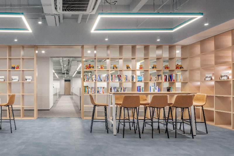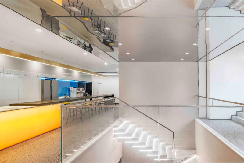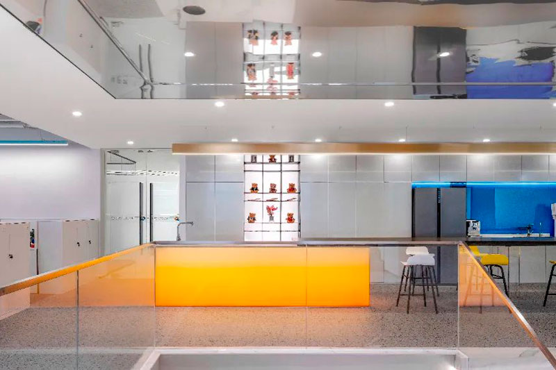 沉浸式體驗人與空間交互,茶水區通過鏡面天花反射,光影在立體空間中流動,超動感空間氛圍就此而生,板塊的不斷更新為它帶來永不停歇的活力,這里是“巨人”的世界。