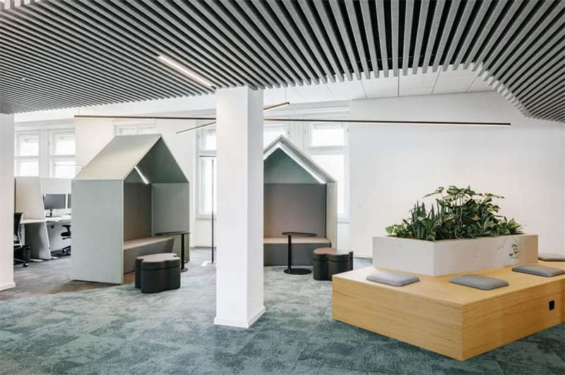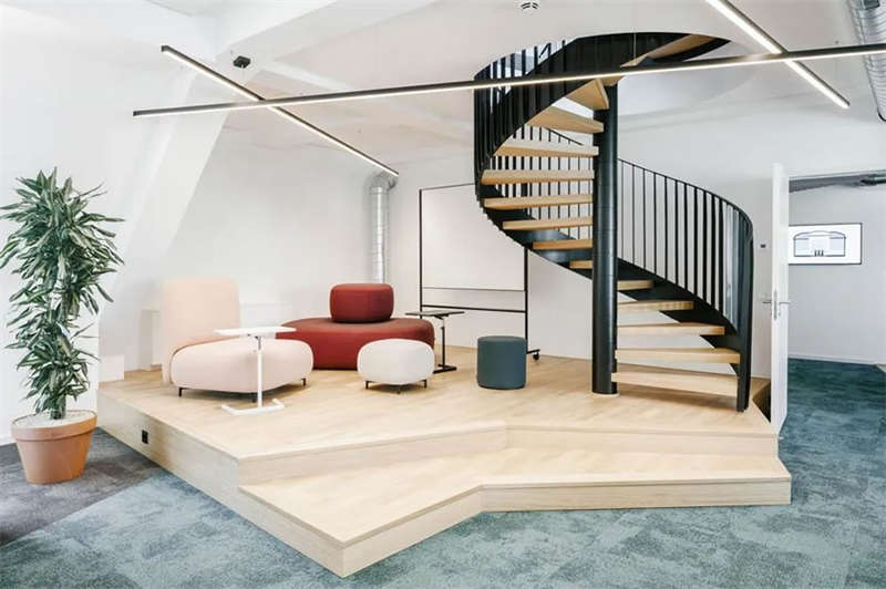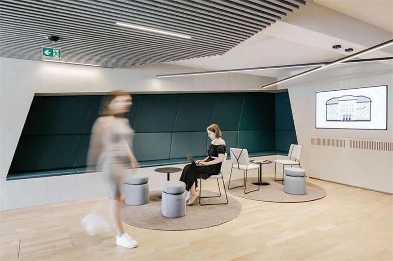 在與客戶的密切合作以及對方員工的積極參與下,設計師成功創建了一處精彩的工作空間,在這里,人們可以集中精力專注工作,也可以隨時隨地進行各種不同的協作、交流、互動和頭腦風暴。各種不同主題的廳廊空間、靈活多元的協作空間、以及巨大的屋頂露臺,讓這處空間變得獨一無二。空間隨著人們的移動不斷變化著景觀視線和功能場景,豐富而精彩的設計讓這里步移景異,充滿驚喜和樂趣。