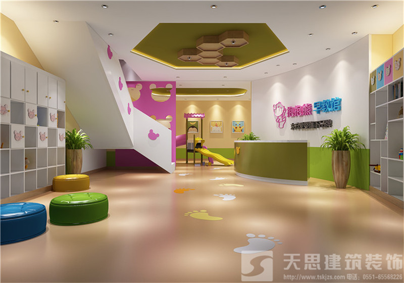 隨著現如今家長對于子女教育的逐步重視,圍繞幼兒的早教親子中心也越來越多。面臨激烈的市場競爭,良好的環境體驗是吸引家長關注品牌的窗口。因此幼兒早教中心在進行裝修設計的過程當中,就應當注意融入品牌與功能的概念。該設計由天思裝飾公司旗下栗工全組成員合作共同完成。于5月正式開工。