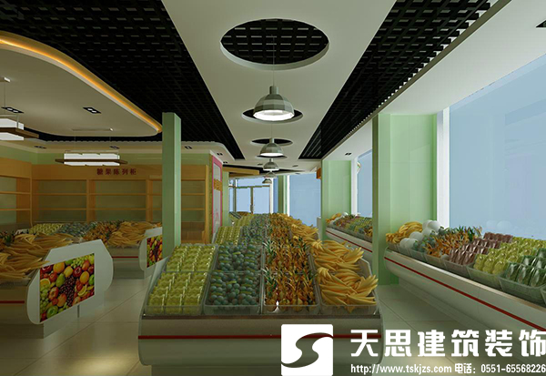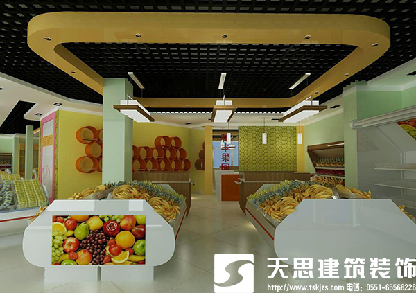 水果店裝飾整體風格要明快簡潔,色調像綠色一樣給人一種清新自然的感覺。 貨架的擺放,要整潔,流通線路能夠環繞,避免人流多的時候造成堵塞。裝水果的貨架盡量不要有棱角,檐口不能太高。