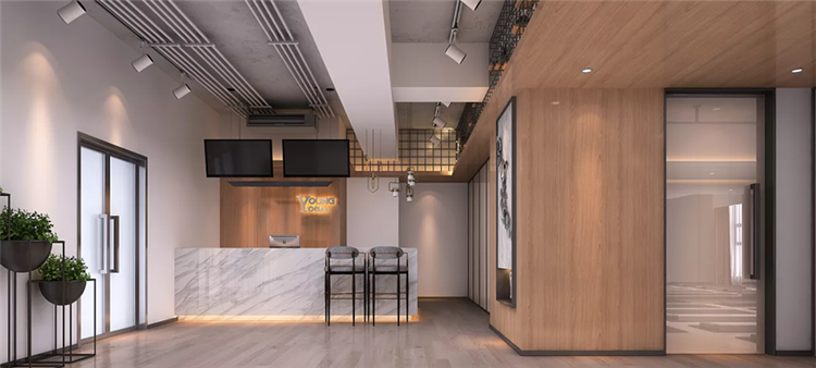 本次設計師在打造瑜伽館內部特色時,以活力、時尚為主要設計理念,在瑜伽館大廳,設計師選用天然磚石來打造背景墻,進行全面刷白,結合天然木材打造的墻面和實木地板,再取黑色裝飾品進行點綴,使整個大廳都充滿的時尚感,而在瑜伽室,設計師則以開闊和簡潔為主,以灰色為主要色系,搭配著實木地板,不添加任何的家具,使整個空間開闊的同時,將瑜伽館的活力感盡數展現出來!