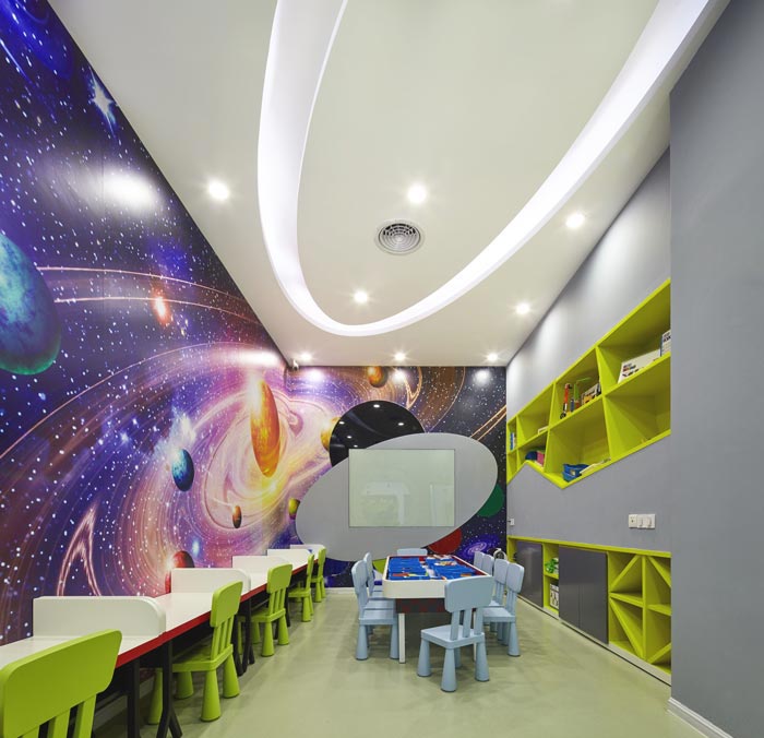 在本次設計中設計師設計了色彩斑斕的城堡故事,設計了絢麗多彩的節日派對,設計了童趣十足的運動空間,設計了充滿文藝色彩的教學環境,為孩子打造一個高品質的童年體驗,提升孩子全方位的能力。