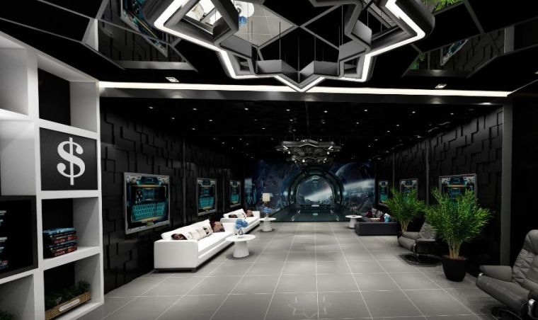 俗話說,氣氛不能輸,一個氣場極強的電競會館絕對可以讓玩家、選手釋放個人最大戰斗力,分泌更多的腎上腺素進入暴走狀態。本次案例整體設計上走的是現代前衛風,以黑色為主色調猩紅色為輔,搭配空間感十足的燈光和炫酷的裝飾元素,緊緊扣合“紅蜘蛛”的品牌主題,同時非常凸顯時尚特色,符合消費群體定位。