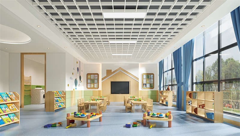 為了適應幼兒園教學活動的眾多需求,幼兒園活動教室在設計上要站在孩子的角度,綜合考慮孩子們的生理心理需求。寬敞的空間及良好的布局能讓孩子們感覺到舒適和溫馨并進而產生歸屬感。各個功能區域的劃分需要合理,各種設施需有利于孩子們自己動手參與并且有利于教學,材料的運用紀細節的功能提供更方便更環保更安全的學習娛樂環境。