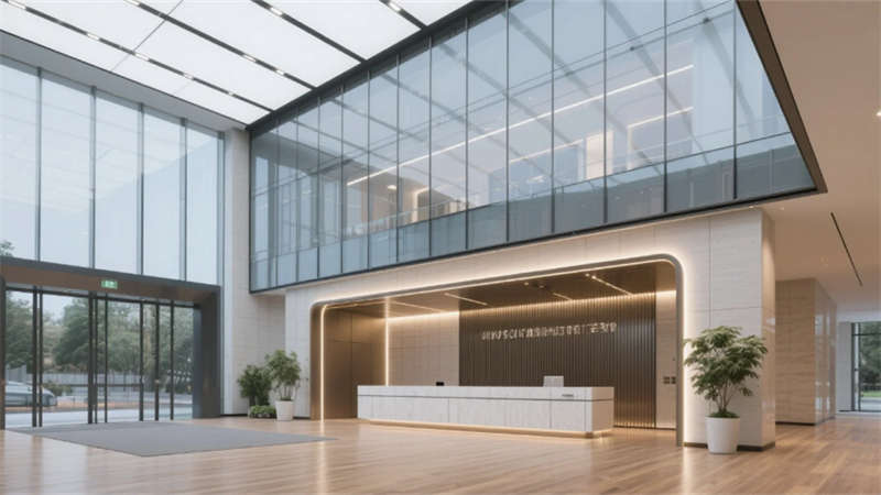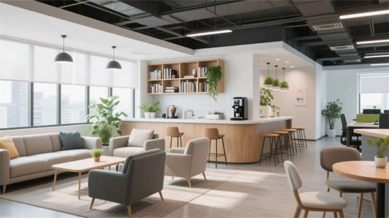 本辦公樓設計以簡約現代風格為核心,打造一個統一而流暢的空間體驗。整體強調功能性、舒適性和美學平衡,每個功能區均采用中性色調、干凈線條和自然元素,營造出寧靜和諧的環境。大堂入口以開放通透的布局迎接用戶,結合玻璃幕墻和木質細節,傳遞專業而溫馨的第一印象。開放式辦公區通過模塊化家具和充足采光,促進團隊協作與效率。會議室設計注重靈活性,透明隔斷和集成設備支持高效交流。員工休息區和餐廳咖啡吧作為社交中心,提供舒適休閑空間,增強員工福祉。經理辦公室平衡隱私與開放性,簡約家具營造專注氛圍。走廊和衛生間延續統一美學,注重清潔與引導性,確保空間銜接自然。