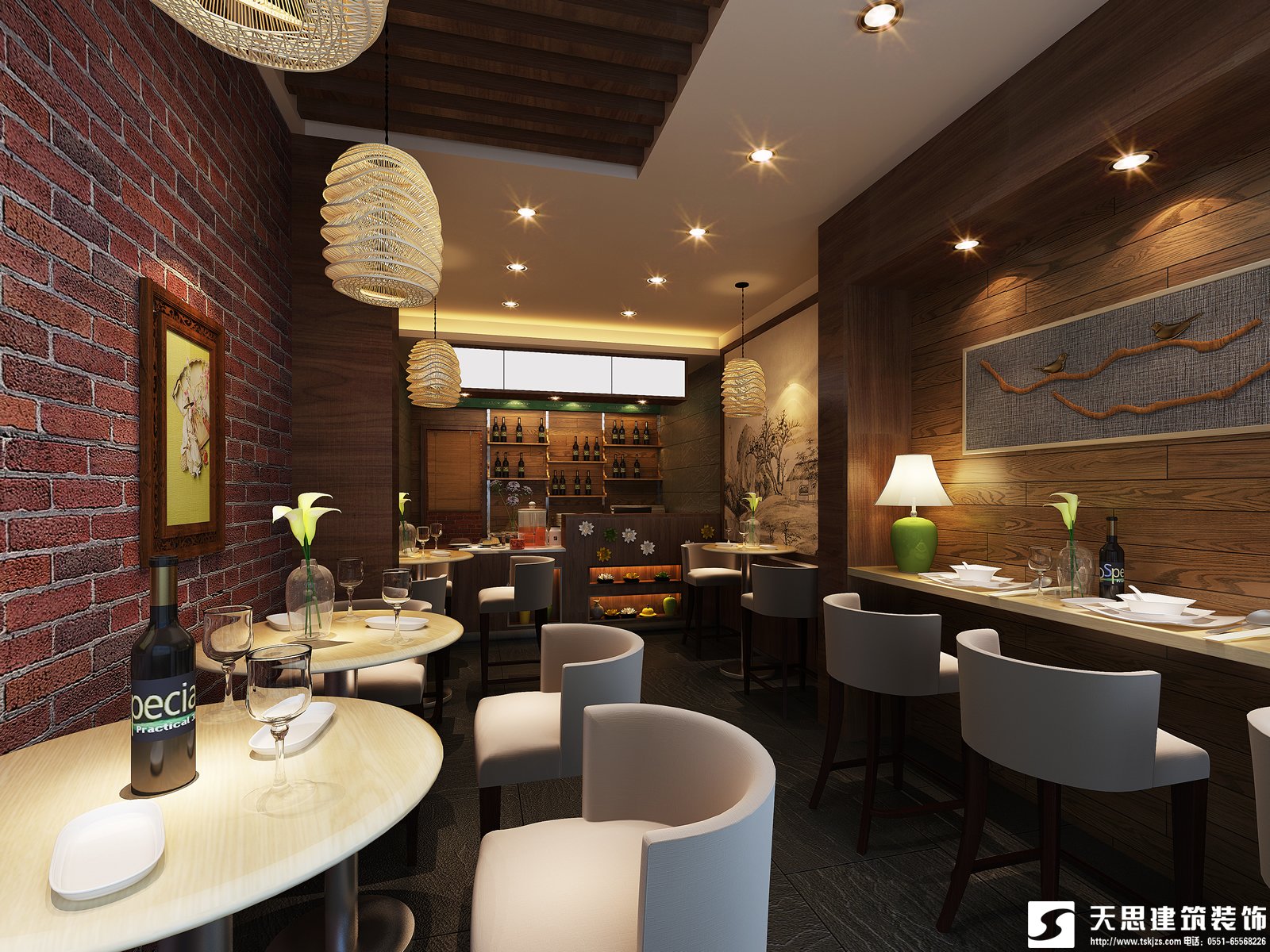 這種規劃選用園林的自由組合的特色,將室內的某一有些聯系歇息區處理成小橋流水,而其他各有些聯系園林的漏窗與隔扇,將靠窗或靠墻的有些進行較為通透的二次分隔,區分出首要就餐區與若干非必須就餐區,以確保某些就餐區具有必定的緊密性。以滿意有些顧客的需求,這些就餐區的區分還能夠經過地上的升起和頂棚的部分下降來到達。這種園林式的空司給人以室內空間室外化的感受,猶如置身于花園當中,使人心情舒暢,增進胃口。與這類規劃方法相干系的裝修個性與細部常選用園林的符號與做法。還會在周圍添加一些綠色植物。