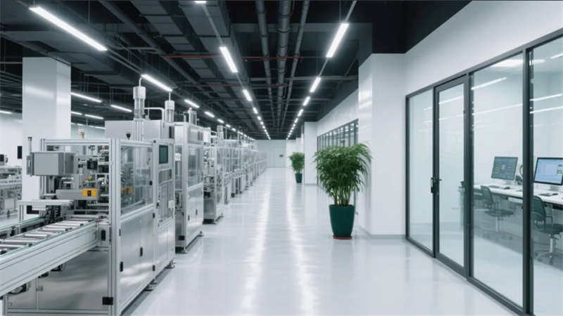 這座廠房以"工業容器中的自然共生"為核心理念,打破傳統生產空間的冰冷邊界。流動的銀灰主調串聯起全場景,裸露的結構肌理與溫潤木元素形成張力碰撞,智能設備在光影交織中高效運轉。