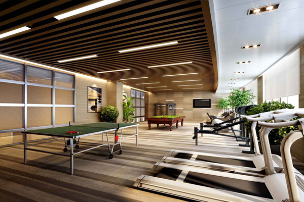 1、健身操房。主操房的空間應足夠大,給健身者以空曠的感覺,布局安排時應盡量避開立柱。