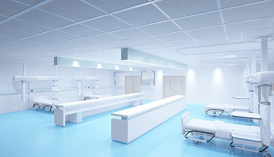 在本案中,設計師一改醫院的常規風格,大膽使用了藍色為基調.藍色向來代表著冷靜、睿智,也能起到平復人們情緒的暗示作用,這次使用在醫院中,更充滿了科技感.為與醫院定位相匹配,室內并無多余的裝飾品,干凈、清爽是本次設計的最大特點.同時,設計師也非常注重空間細節的營造,如醫院的導視,就從病人的角度考慮,清晰顯眼,指向明確.
